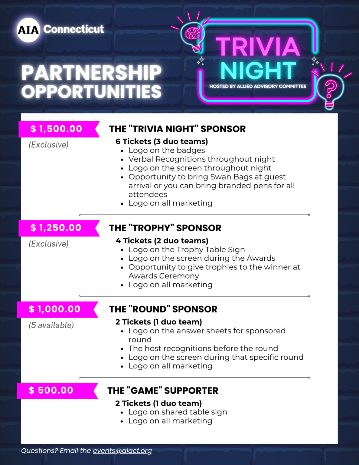 Let’s make this first Trivia Night unforgettable, we can’t wait to see you there!